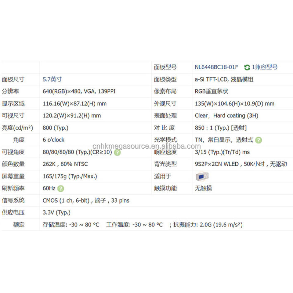 NL6448BC18-01F หน้าจอ5.7นิ้ว640*480จอแสดงผล LCD NL6448BC18-01F แผง LCD