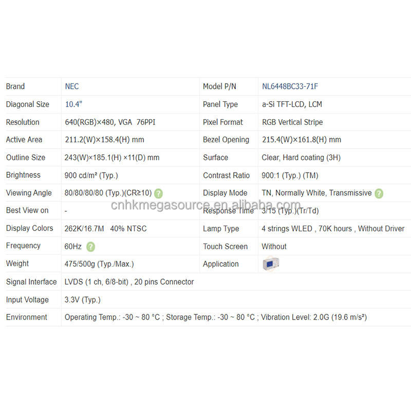 NL6448BC33-71F 10.4นิ้ว640*480 TFT โมดูลหน้าจอ LCD จอแสดงผล LCD แผงจอ TFT LCD ในสต็อก