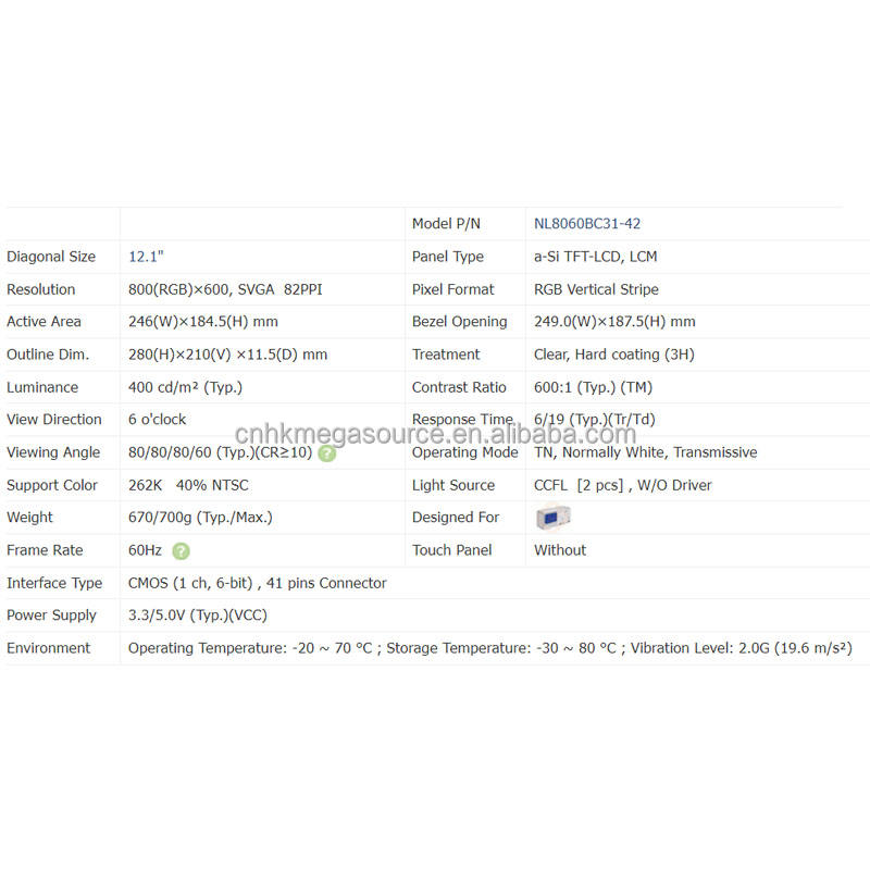 NL8060BC31-42 12.1นิ้ว800*600 TFT โมดูลหน้าจอ LCD จอแสดงผล LCD แผงจอ TFT LCD ในสต็อก