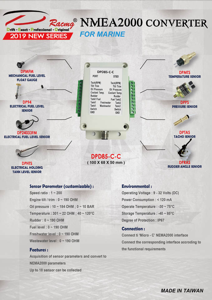 NMEA 2000ทะเลมัลติฟังก์ชั่ IP67กันน้ำแปลงเรือวัด