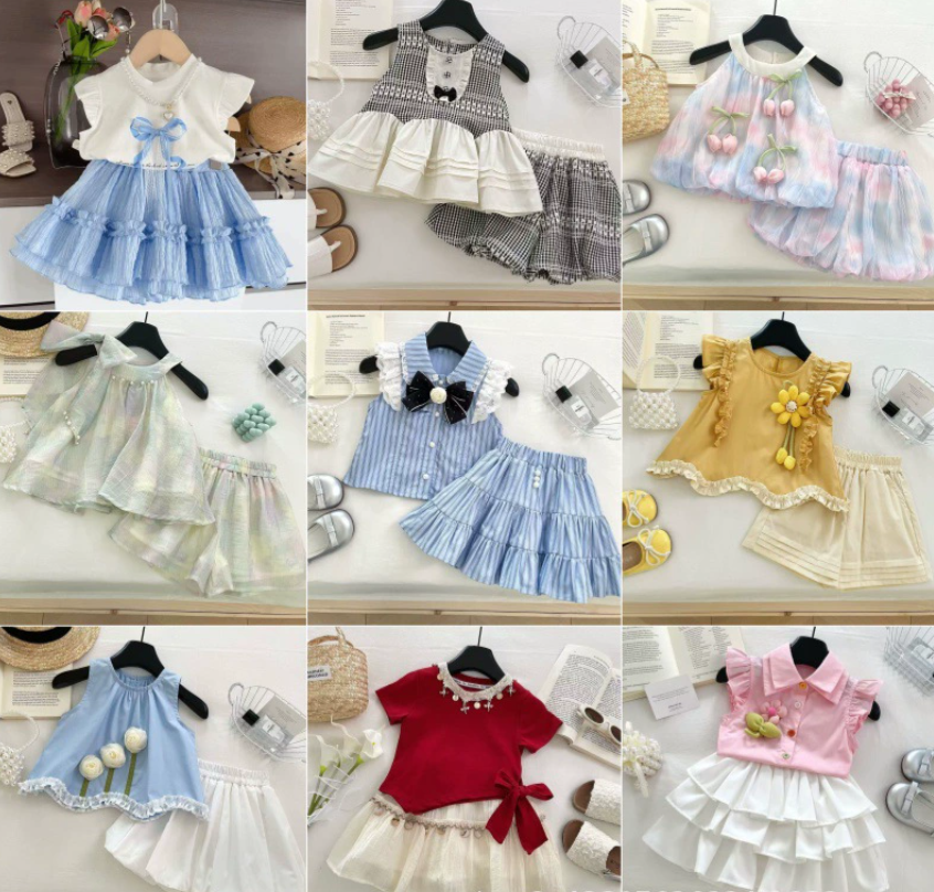 ชุดฤดูร้อนสองชิ้น NO Brabnd TZ-035 สำหรับเด็ก unisex อายุ 0-12 ปี เสื้อยืดแขนสั้นสีพื้นผสมกับกางเกงขาสั้นผ้าฝ้าย