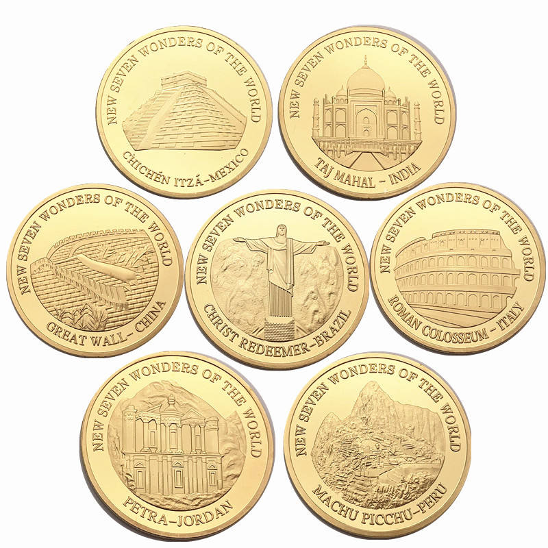 NO MOQ ราคาผู้ผลิตร้อนขายสะสมเหรียญทอง/โลหะรางวัลเหรียญ/ใหม่เจ็ดสิ่งมหัศจรรย์ของเหรียญโลก
