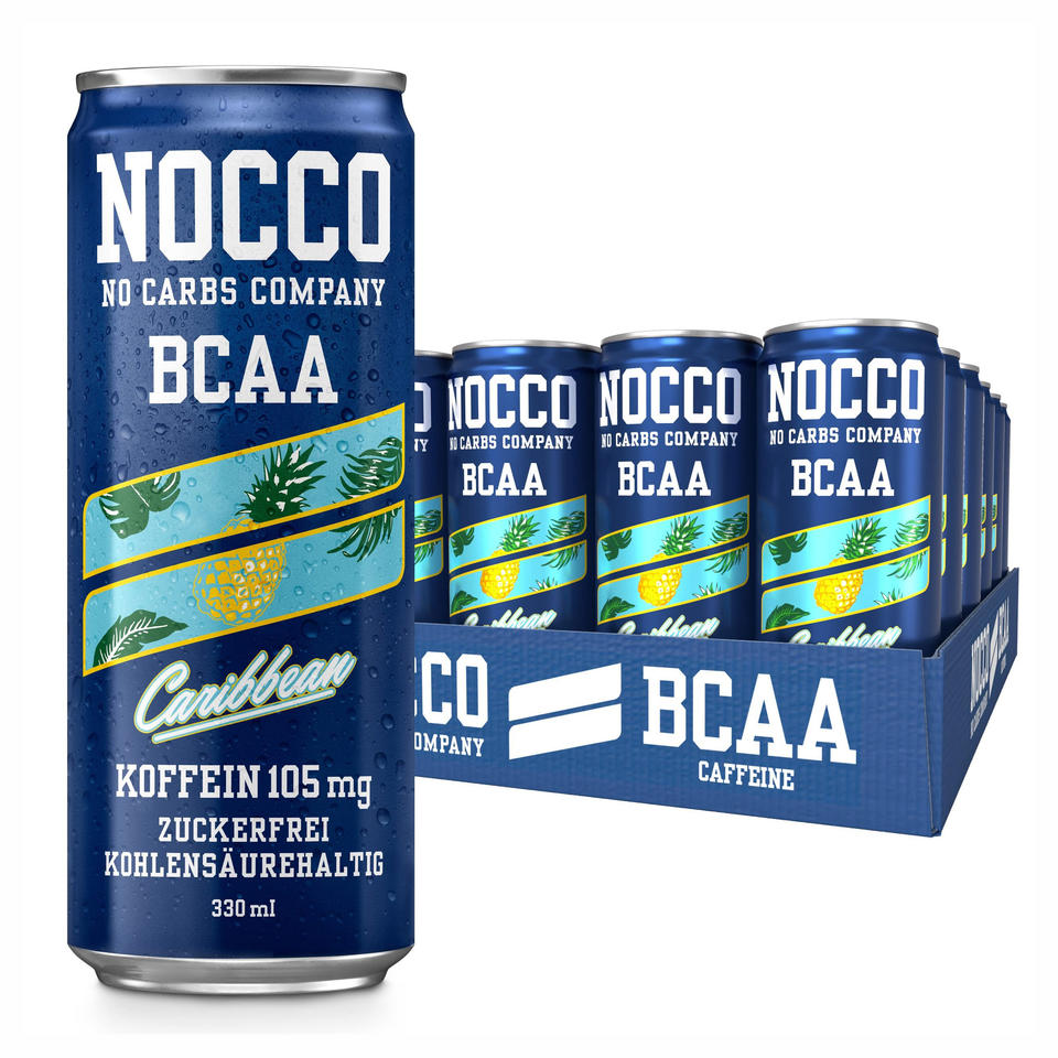 เครื่องดื่มโนโค บีซีเอเอ รสสับปะรดแคริบเบียน - กระป๋อง 12 ออนซ์ (แพ็ค 12 กระป๋อง) คาเฟอีน 180 มก. ปราศจากน้ำตาล