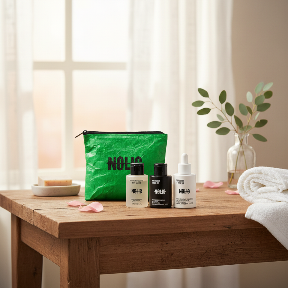 Nolie I'm ชุดพร้อมผลิตในประเทศเกาหลี loveology-Care น้ำมันนวด30มล. เจลทำความสะอาดร่างกาย50มล. ถุง30มล.