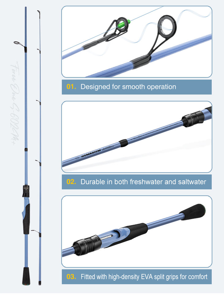 Nomadism เบ็ดตกปลาคาร์บอนไฟเบอร์น้ำหนักเบามาก1.82เมตร, เบ็ดตกปลาคอมโบเหยื่อล่อปลาทะเลสาปแม่น้ำทะเลสาป