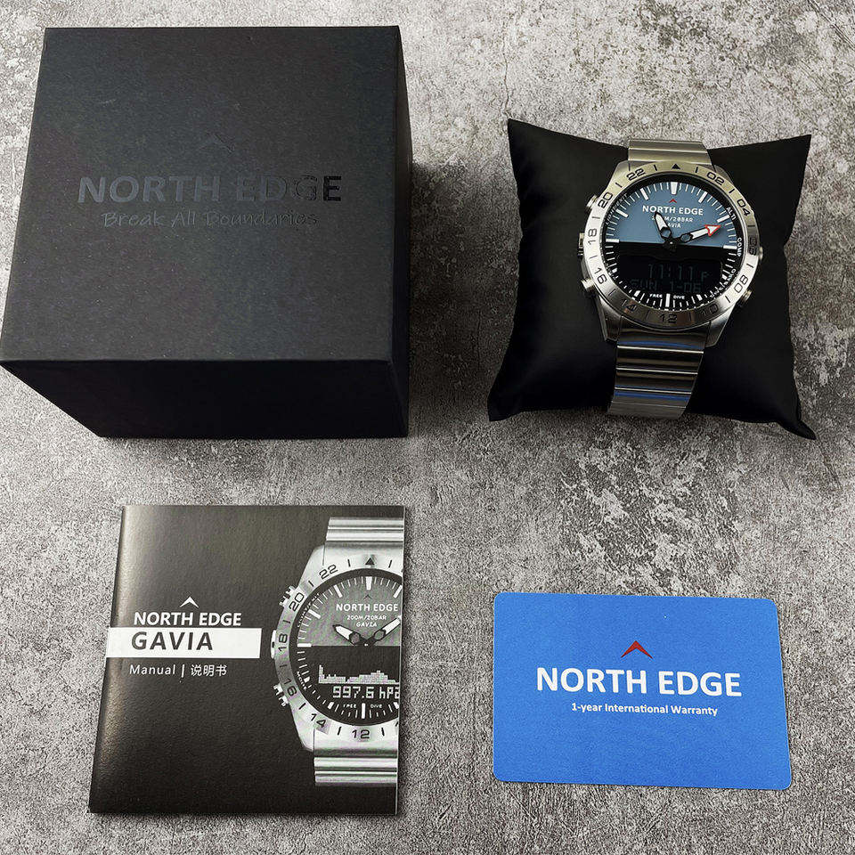 นาฬิกา NORTH EDGE GAVIA สแตนเลสสตีล ควอตซ์ นาฬิกา DSport สำหรับผู้ชาย นาฬิกาดำน้ำ อนาล็อก ดิจิตอล พร้อมมาตรวัดความสูง เข็มทิศ รุ่นปี 2025