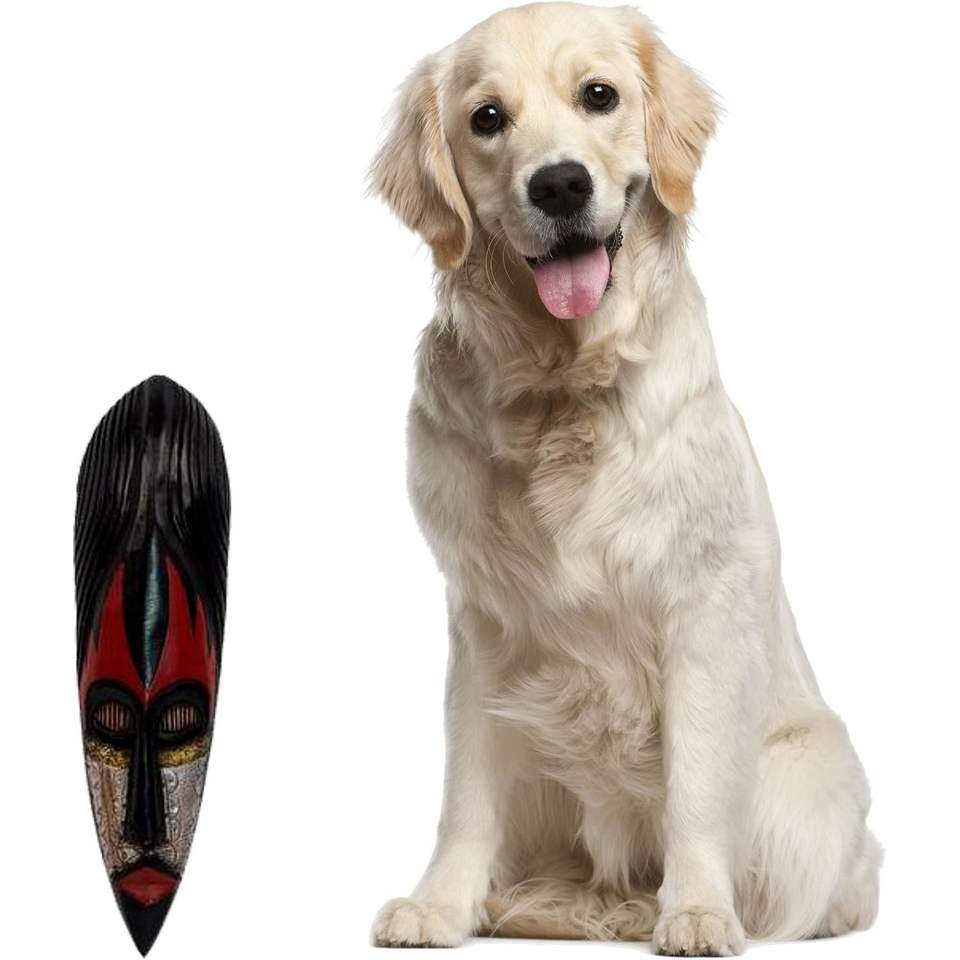 หน้ากากไม้แกะสลักด้วยมือจากโนวิก้า ประเทศไนจีเรีย ลายสาวฟูลานี สีดำและสีแดง พร้อมตกแต่งด้วยอะลูมิเนียม ขนาด 20x5.5 นิ้ว สำหรับผู้ใหญ่ทุกเพศ