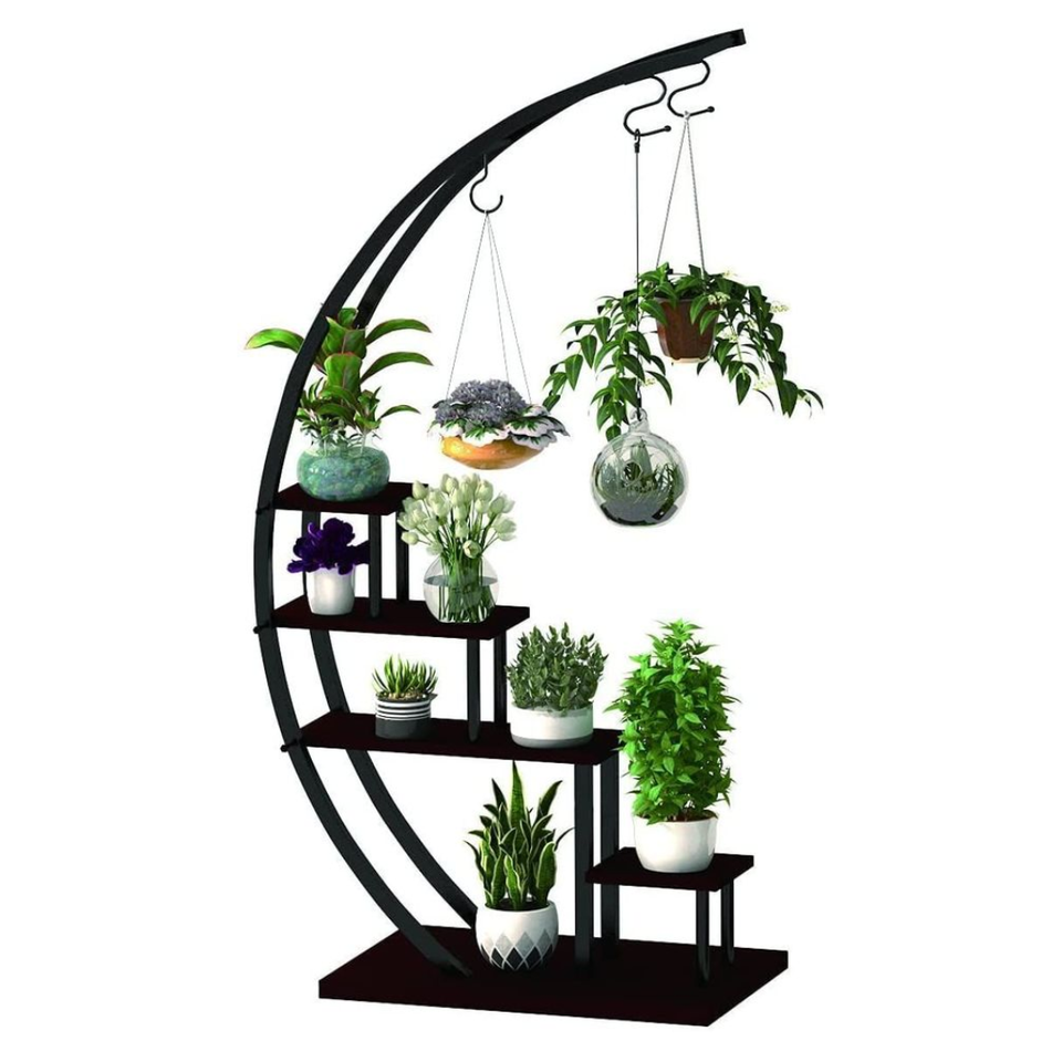NP-FS01 Crescent Shaped Flower Stand Metal Multi Level Plant Rack for Indoor Garden Living Room