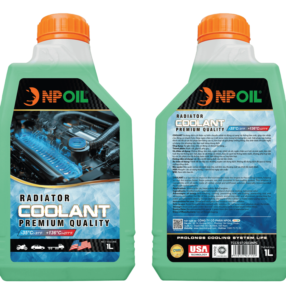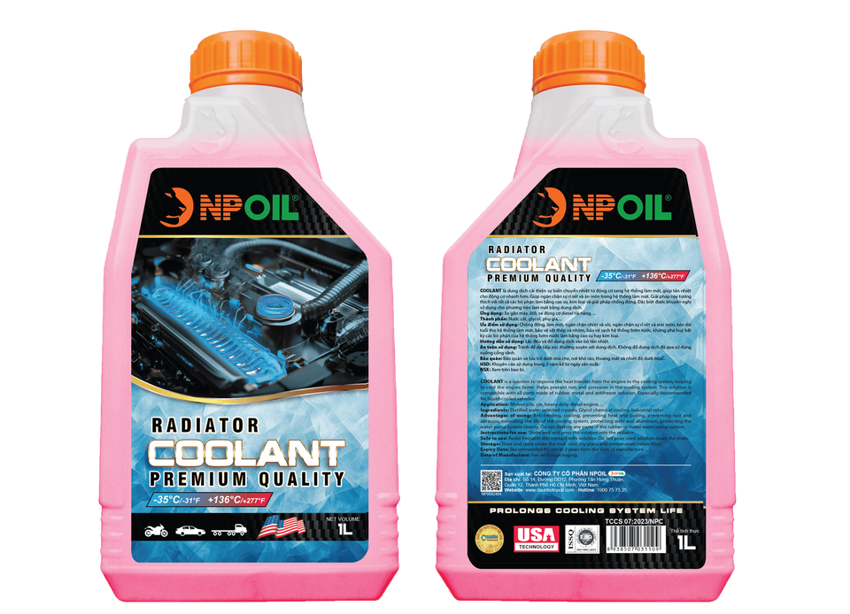 น้ำยาหล่อเย็นหม้อน้ำ NPOIL - สีเขียว/ชมพู 0.5 ลิตร 1 ลิตร 4 ลิตร ถัง 18 ลิตร ถัง 200 ลิตร น้ำยาสูตรไกลคอลสำหรับระบบระบายความร้อน คุณภาพสูง