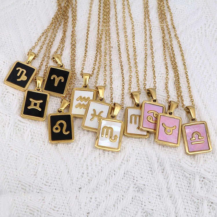 สร้อยคอจี้รูปสี่เหลี่ยมผืนผ้าประดับเปลือกหอยสีขาว ชุบทองคุณภาพสูง NS1237 ทำจากสแตนเลสสตีล สำหรับผู้หญิง