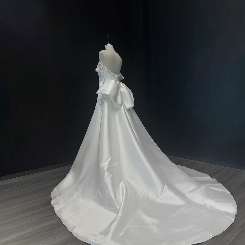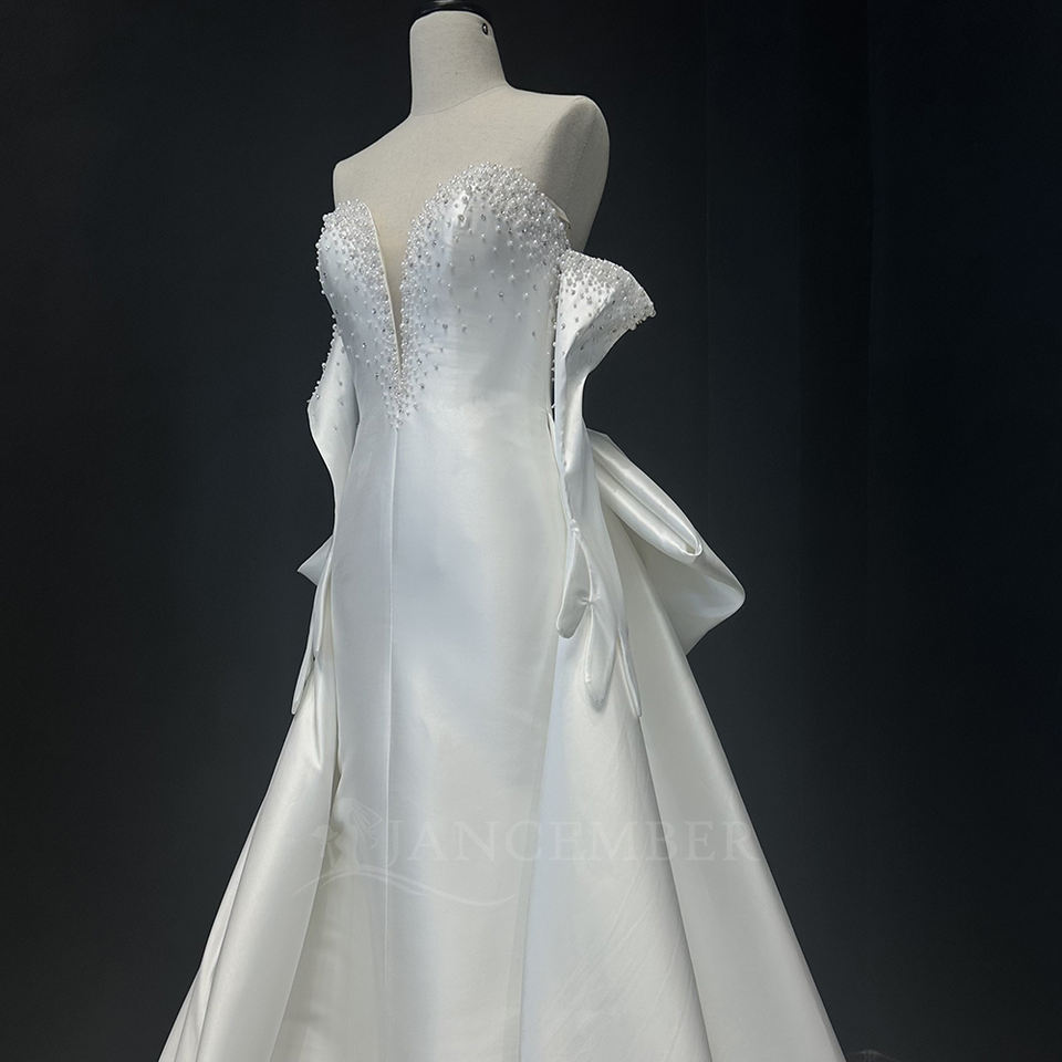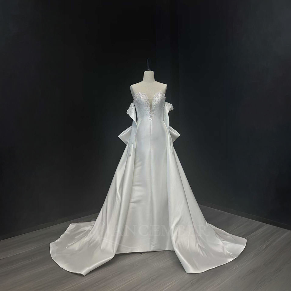 ชุดแต่งงานทรงเมอร์เมดสีไอวอรี่แบบทันสมัย NT14 ประดับลูกไม้ลายดอกไม้และคริสตัล พร้อมกระโปรงยาวแบบโอเวอร์สเกิร์ต ระบายอากาศได้ดี