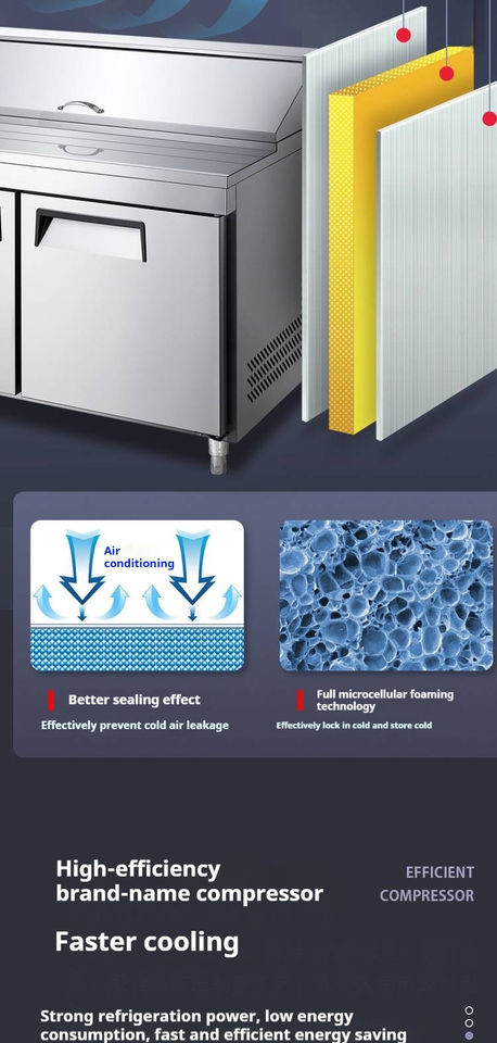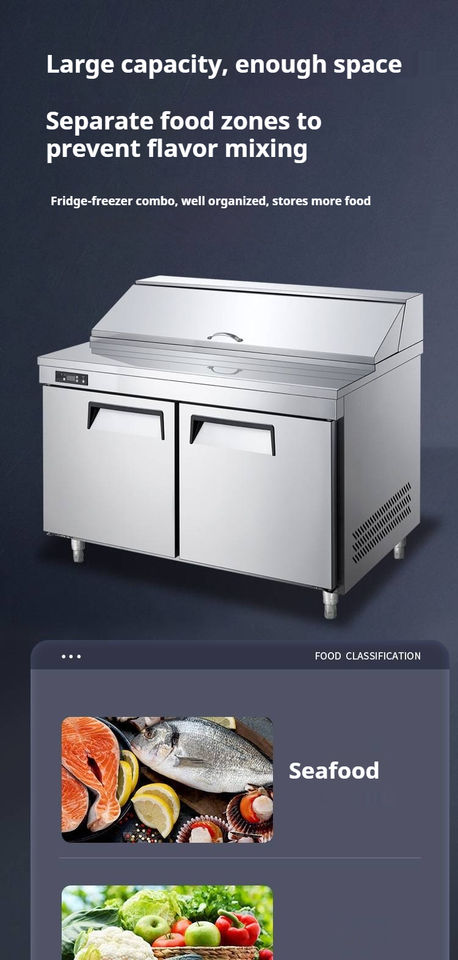 NUELEAD NE-1102 1M Commercial Air Cooled Stainless Steel Double Doors 310L Food Prep Table Digital Display 0-10 Temperature