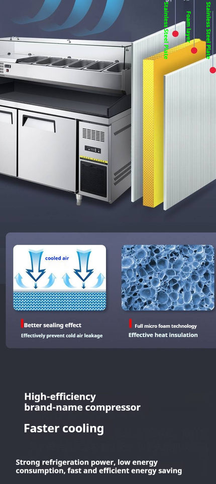 โต๊ะเตรียมอาหารพร้อมระบบทำความเย็น