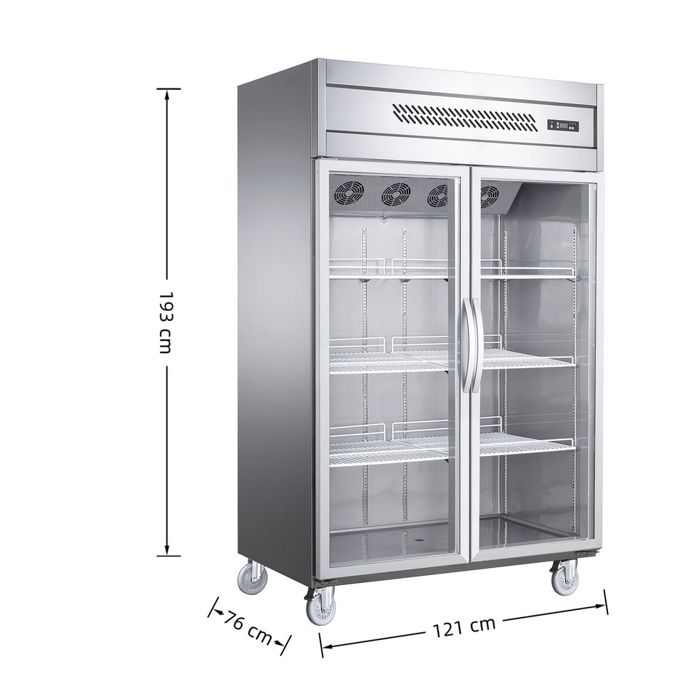 NUELEAD NE-874 980L Large Capacity Double Glass Doors Stainless Steel Dual Temperature LED Kitchen Commercial Refrigerator