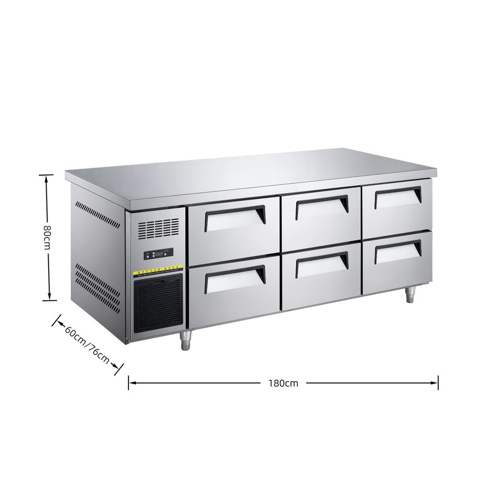 Nuelead NE-921 80cm สำหรับทำความเย็นในอากาศเชิงพาณิชย์อุปกรณ์500L สแตนเลสสามประตูตู้เย็นใต้เคาน์เตอร์เชิงพาณิชย์