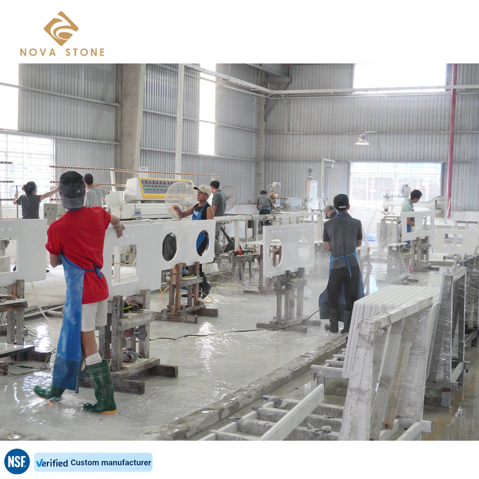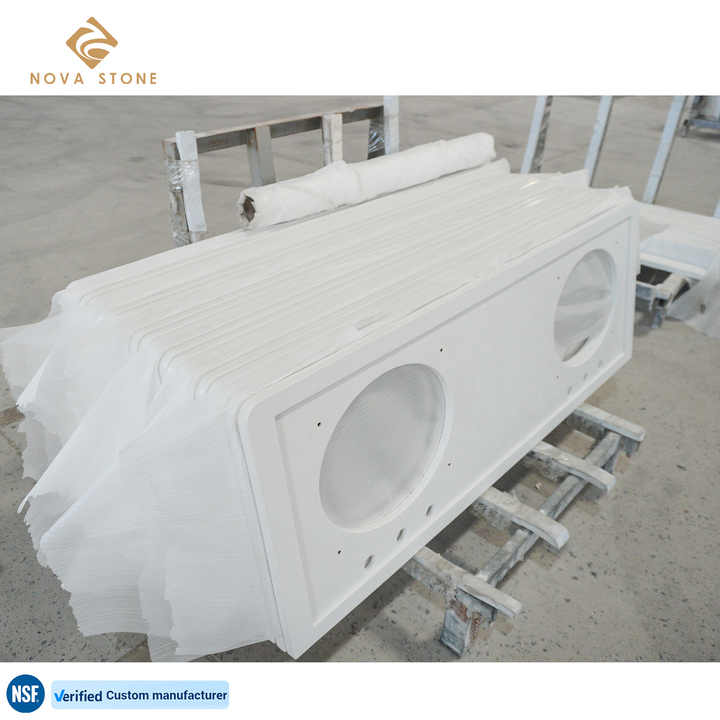 โต๊ะเครื่องแป้งควอทซ์สำเร็จรูปสำหรับห้องน้ำ NV171ท็อปเคาน์เตอร์ลามิเนตความหนาท็อปจากโรงงาน