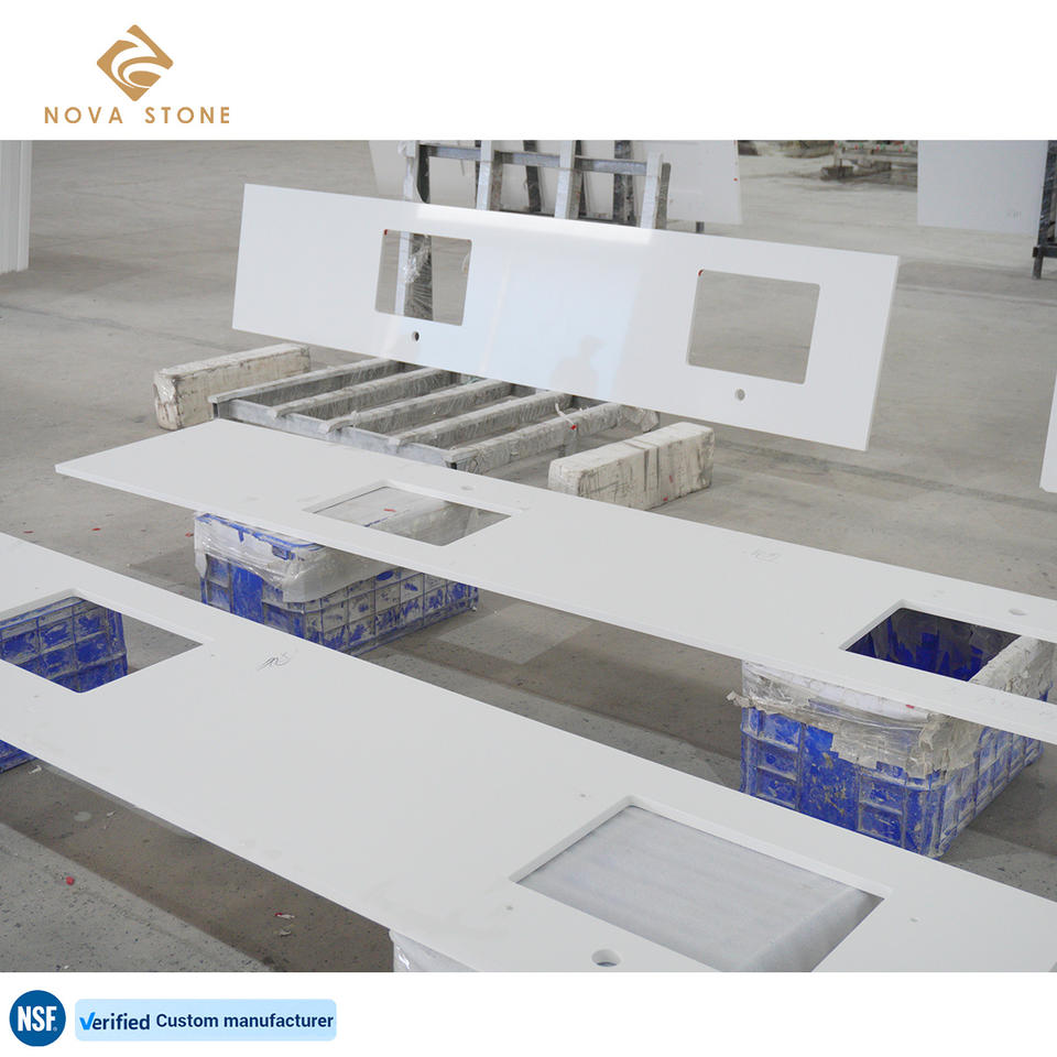 เคาน์เตอร์ควอทซ์เทียมสำหรับห้องน้ำสีขาวดำ NV171