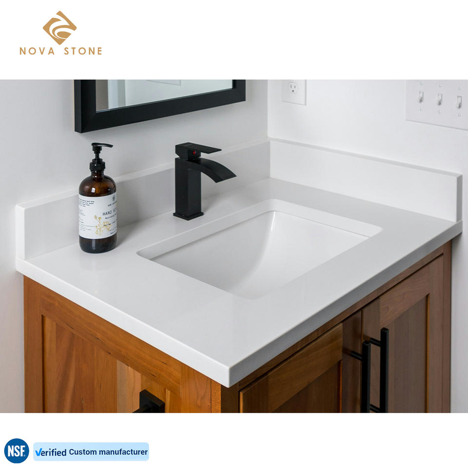 NV171 Solid White Artificial Quartz Vanity Top Bathroom Countertop Flame Resistance Heat-Resistant Durable Wholesale Supply