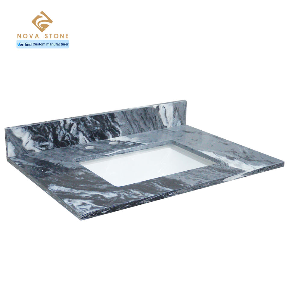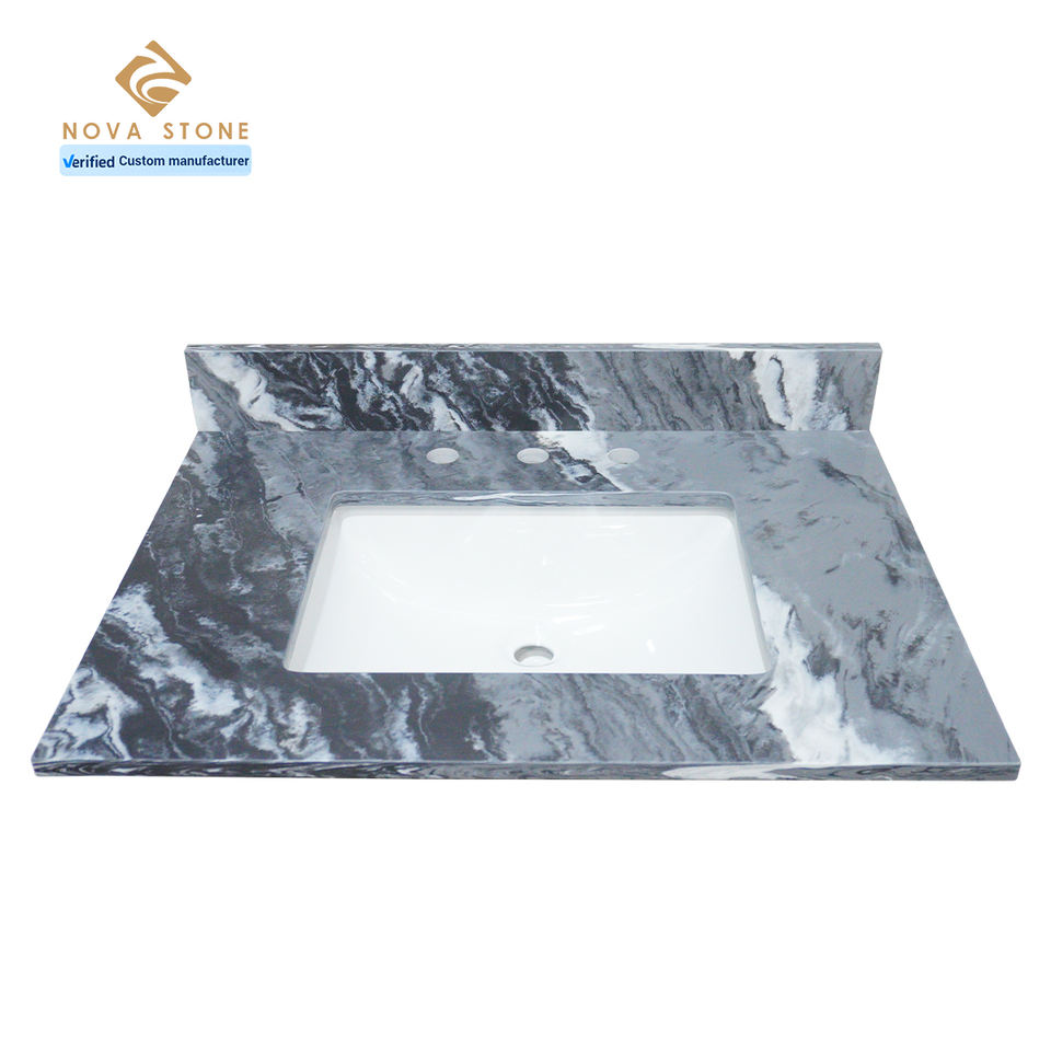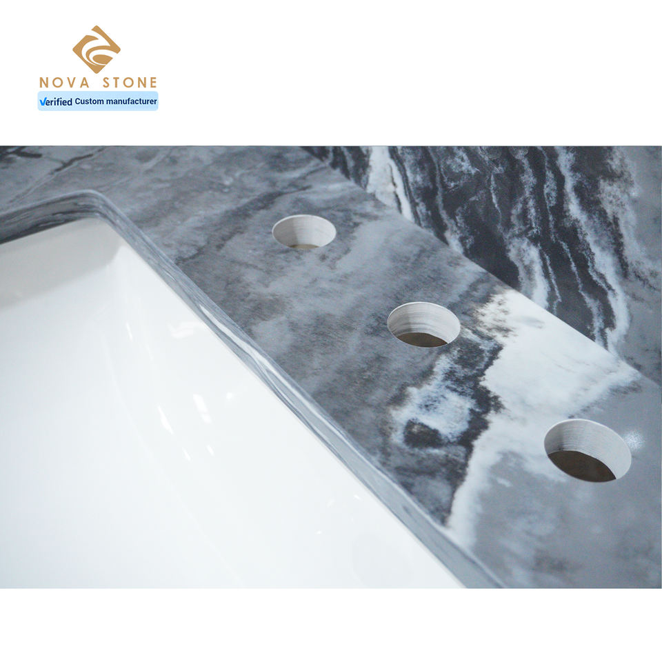 โต๊ะเครื่องแป้งควอตซ์ท็อปเคาน์เตอร์ห้องน้ำพร้อมรูอ่างล้างจานสำหรับโรงงาน NV2005
