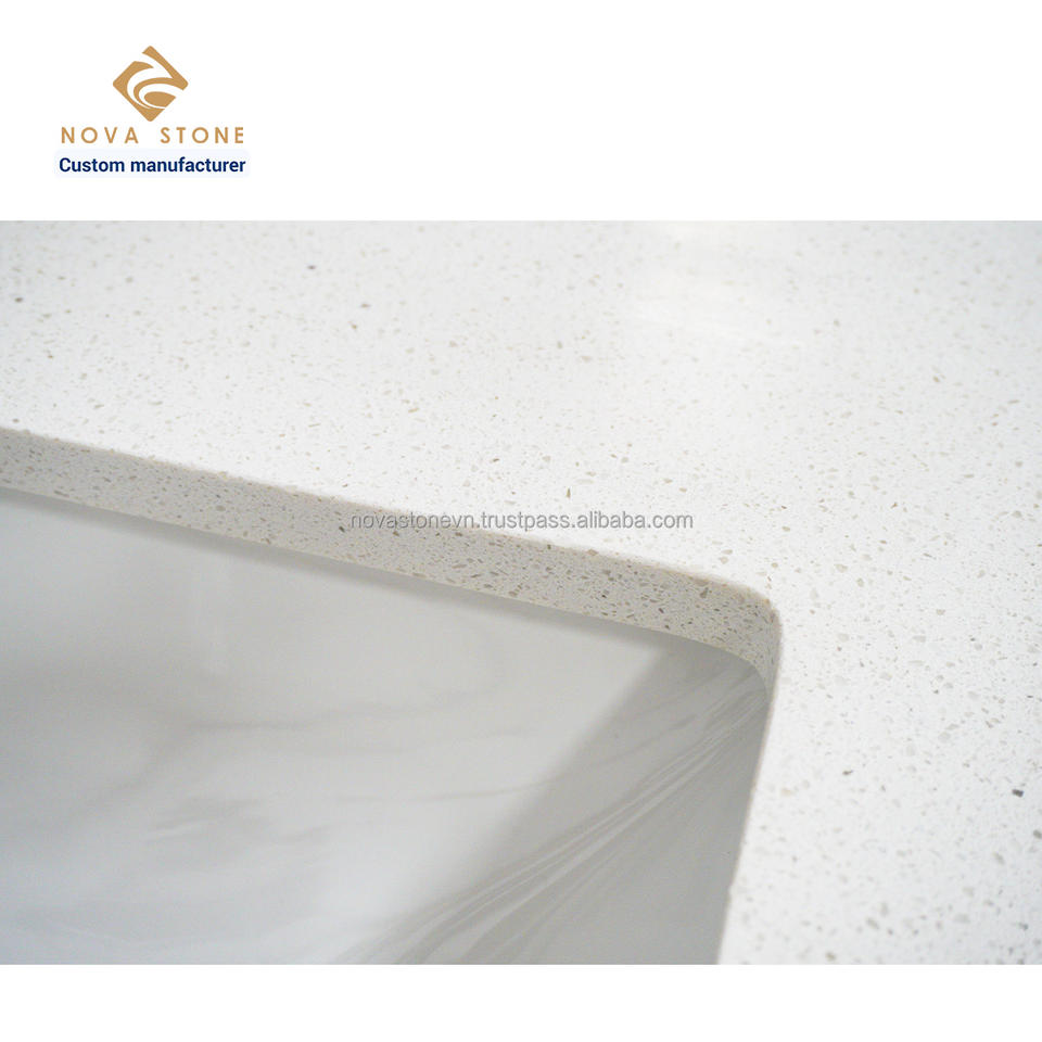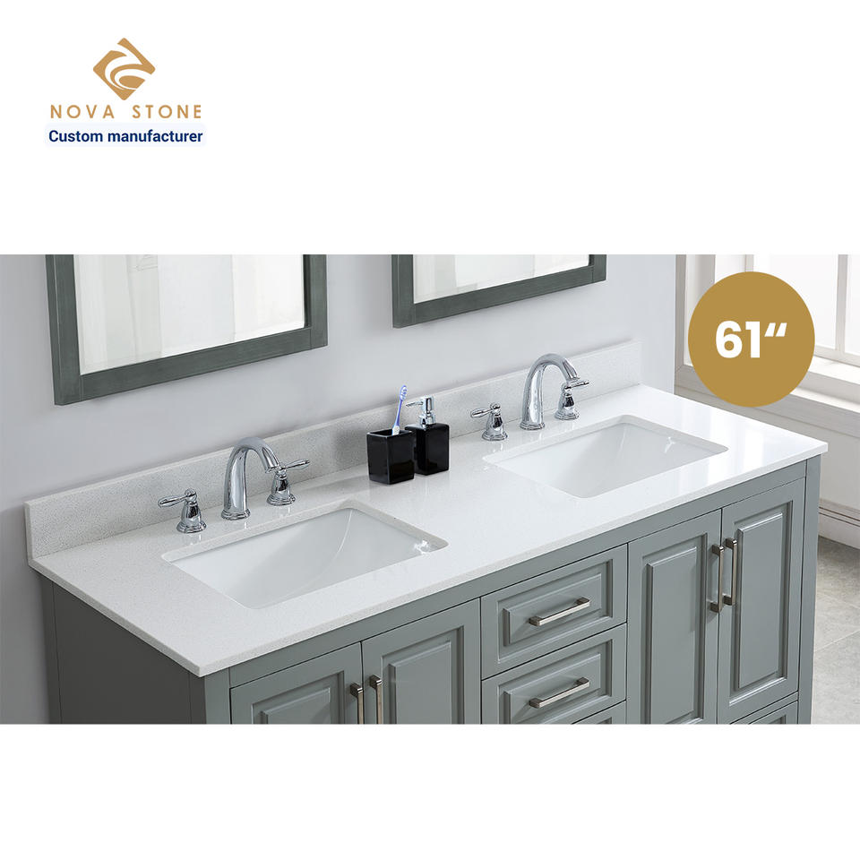 ด้านบนโต๊ะเครื่องแป้งควอตซ์หนาสองชั้นป้องกันจาระบี61 * 22in 20มม. ควอตซ์ NV375ละเอียดมาก