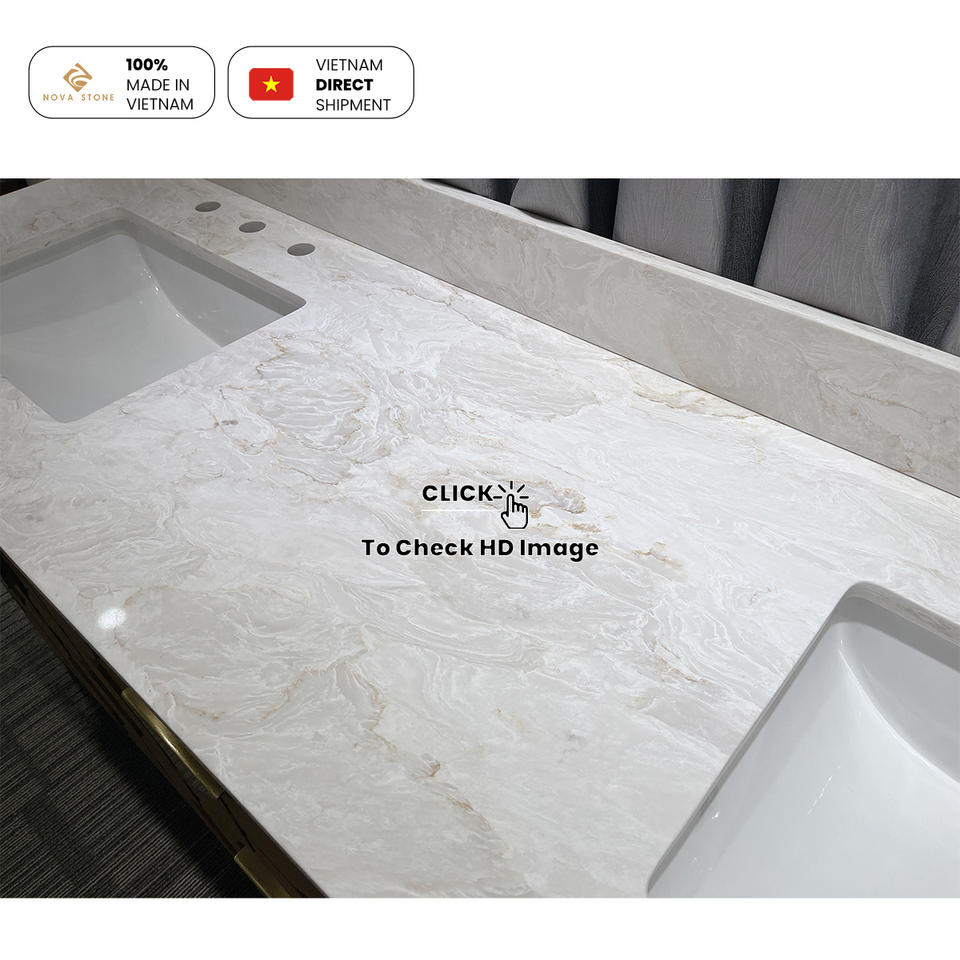 แผ่นหินควอตซ์สังเคราะห์ NV616 สำหรับตกแต่งภายใน ป้องกันแบคทีเรีย ขนาดใหญ่ สำหรับโครงการที่อยู่อาศัย บ้านพักตากอากาศ และพื้นผิวทำงาน