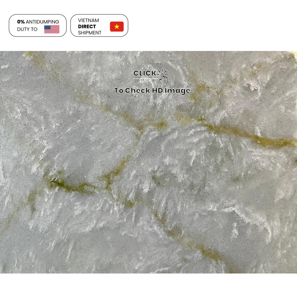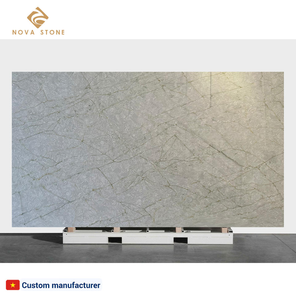 แผ่นหินควอทซ์หินเทียมสีเขียวหยกหรูหราสำหรับใช้ในครัวเรือนวิศวกรรมที่อยู่อาศัยแผ่นหินควอทซ์คาร์รารารารารารา NV736