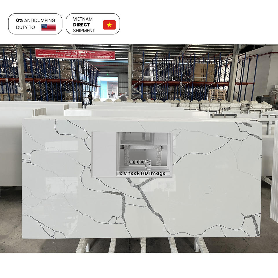 แผ่นหินควอตซ์เทียมสีขาวขนาดจัมโบ้ของเกาะป้องกันการเจาะสำหรับบ้านพักที่อยู่อาศัย NV872