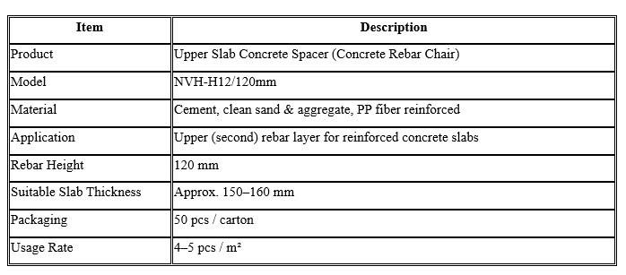 ตัวเว้นระยะระหว่างแผ่นพื้น NVH-H12/120 มม. สำหรับกระเบื้องภายใน (ใช้ในโรงแรม อพาร์ทเมนท์ วิลล่า ห้างสรรพสินค้า)