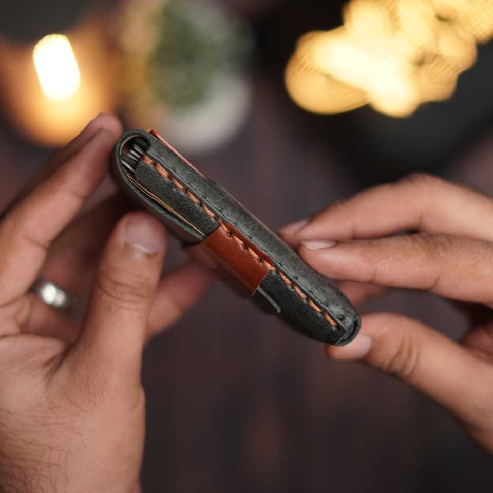 NVL เลเธอร์คราฟท์ หมายเลข กระเป๋าใส่บัตรเครดิตออลอินวัน 101 ใบ หนังแท้คุณภาพสูง รับประกัน 5 ปี สีดำชาร์โคลพร้อมสีน้ำตาล