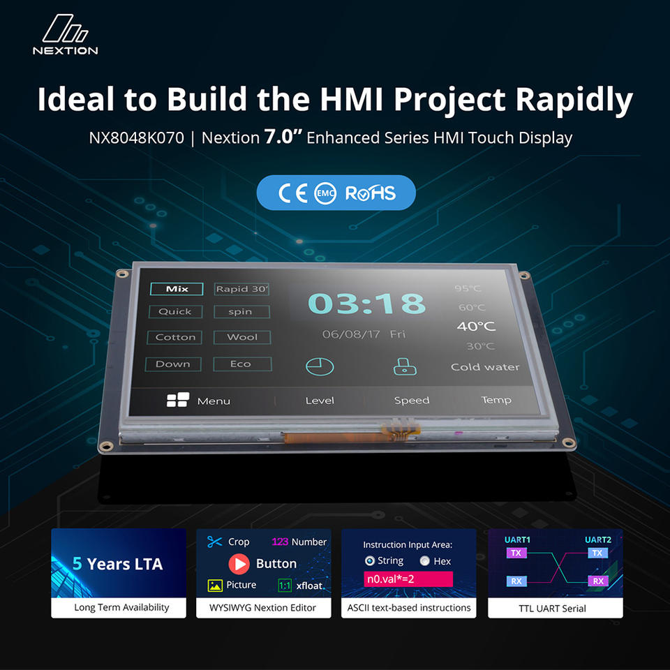 NX8048K070 NEXTION จอแสดงผลแบบสัมผัส LCD TFT แบบ Capacitive ทั่วไปที่ได้รับการปรับปรุง HMI พร้อม RTC ในตัว/1K EEPROM/8 ดิจิตอล GPIO 800x480
