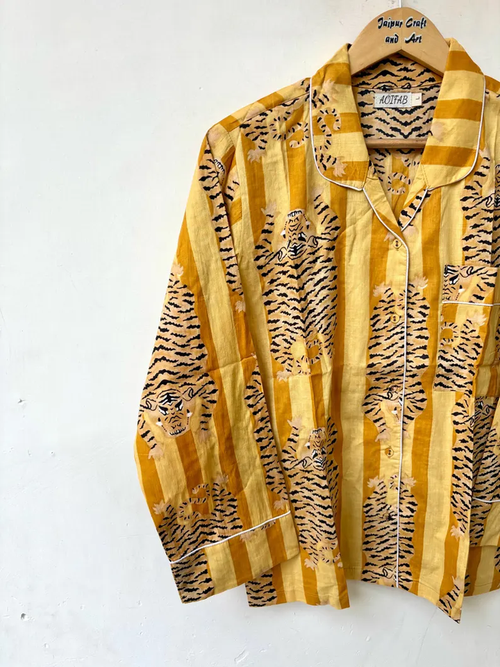 ชุดนอนผู้หญิงลายเสือพิมพ์ลาย ชุดนอนลำลองฤดูร้อน ผ้าฝ้าย 100% นุ่ม ระบายอากาศได้ดี ชุดนอนยาวคลุมเข่า ODM