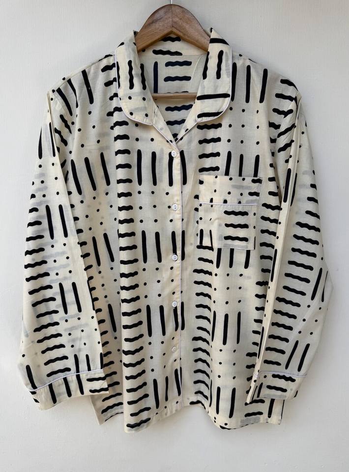 ชุดนอนผู้หญิงลายเสือพิมพ์ลาย Naaz Textile ชุดนอนลำลองฤดูร้อน ผ้าทอเนื้อนุ่ม ระบายอากาศได้ดี แขนยาว ความยาวระดับเข่า