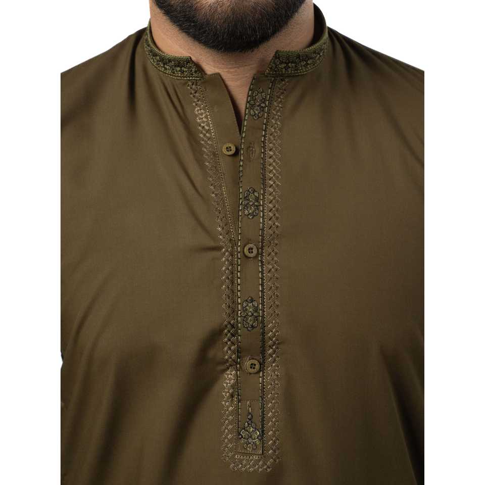 นาดีม คูร์ตา พี-17 เสื้อคุร์ตาแบบดั้งเดิม แขนยาว ผ้าฝ้ายเนื้อปานกลาง สีเขียว สำหรับเจ้าบ่าวในงานเมห์นดี