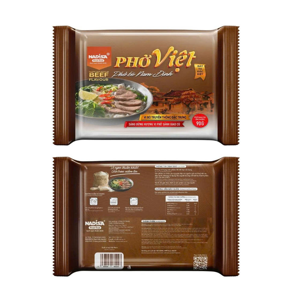 นาดิสา บะหมี่ข้าวทำมือสำเร็จรูป รสเนื้อวัวแบบดั้งเดิมเวียดนาม 90 กรัม แบบซอง ชามใหญ่ พร้อมรับประทานใน 4 นาที