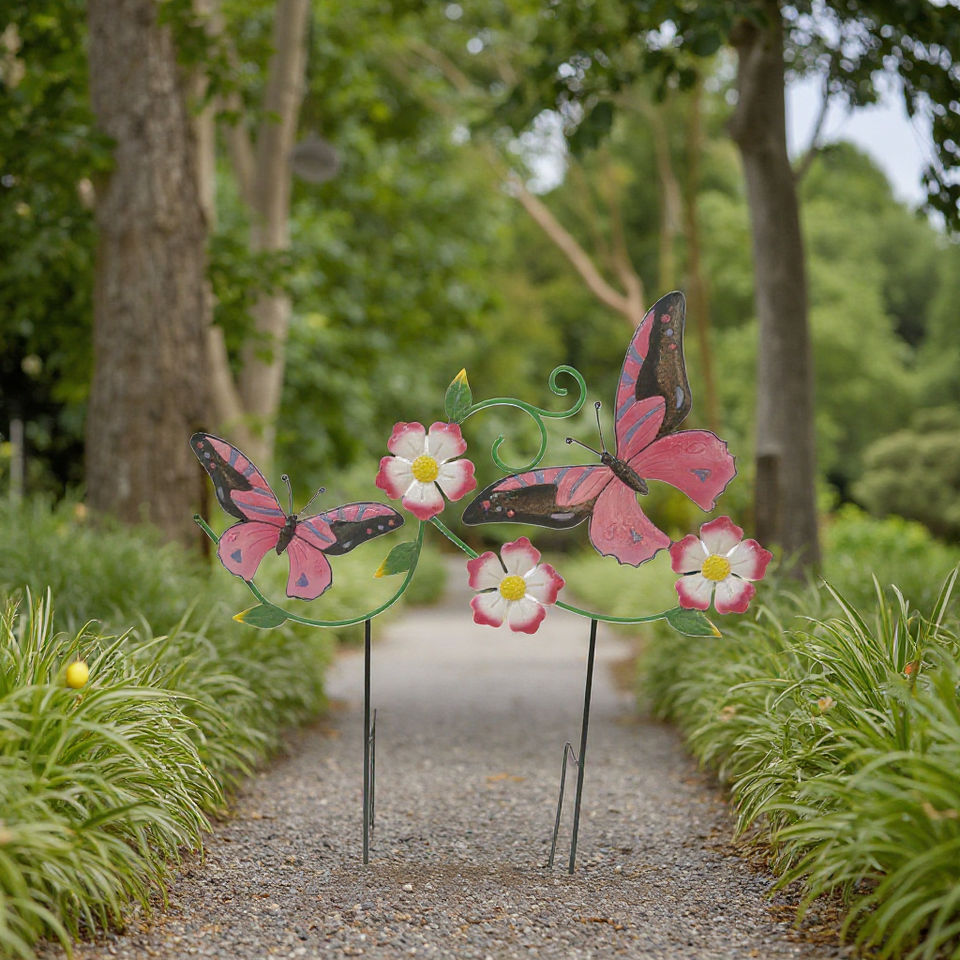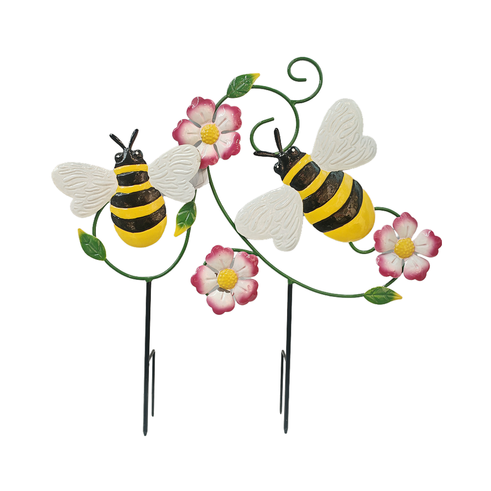 Nafang ไม้กลางแจ้งโลหะสองเสารูปผีเสื้อและผึ้งพร้อมดอกไม้ประดับสวนตกแต่งสวนสำหรับสนามหญ้าในบ้านสวนหลังบ้าน