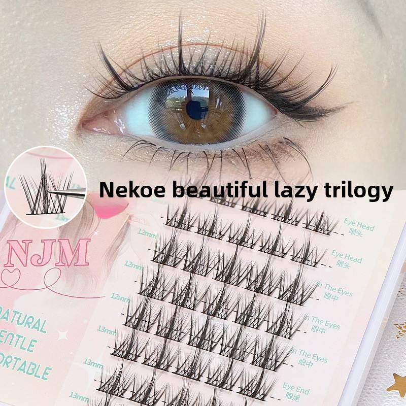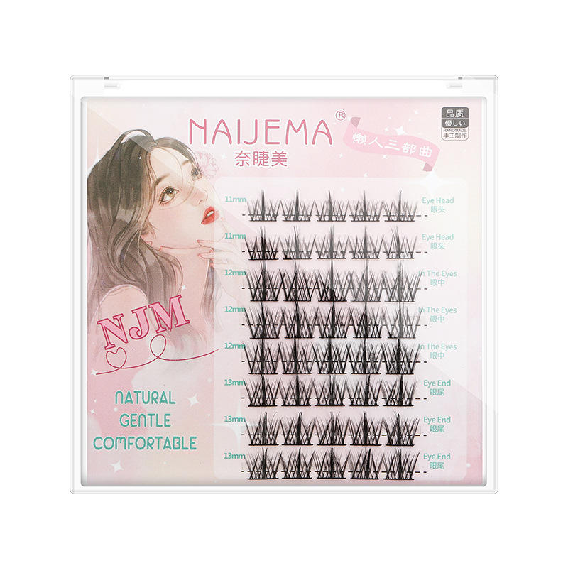 Nai Jie Mei ขนตาปลอมแบบแบ่งส่วนขนตาปลอมก้านบางมากขนตามังงานแบบหนาแน่นขนตามังงาน