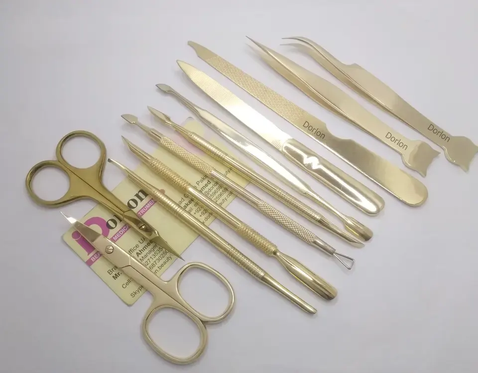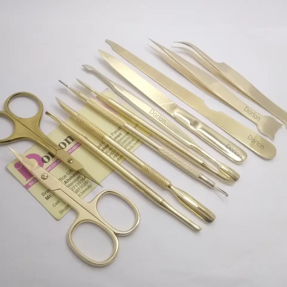 เครื่องมือดูแลเล็บชุบทองเครื่องมือทำเล็บมือเล็บเท้าสแตนเลสกรรไกรตัดหนังกำพร้าตะไบเล็บโลโก้ออกแบบได้ตามต้องการ