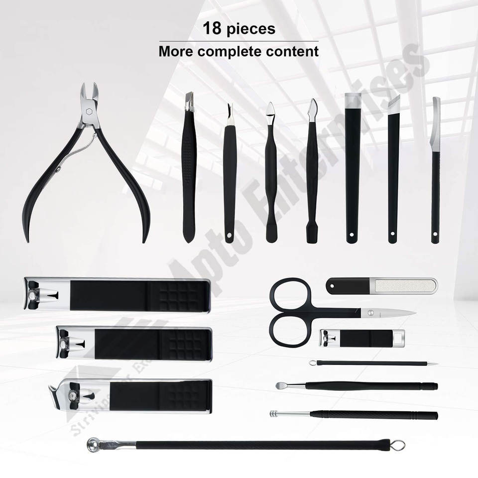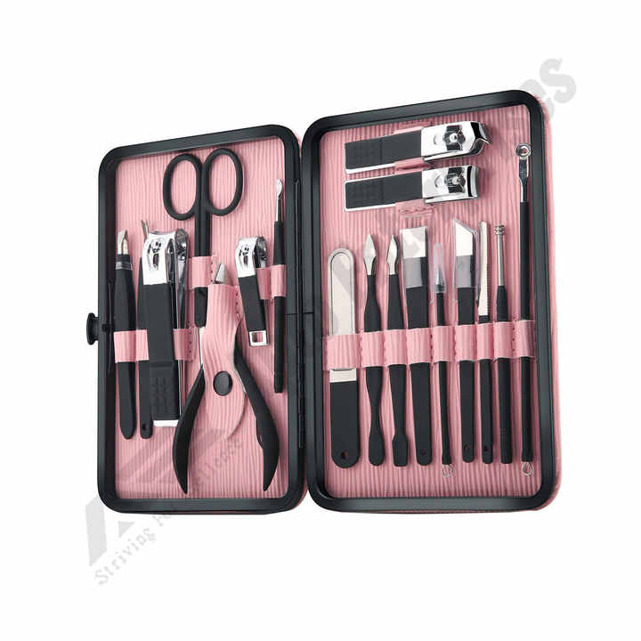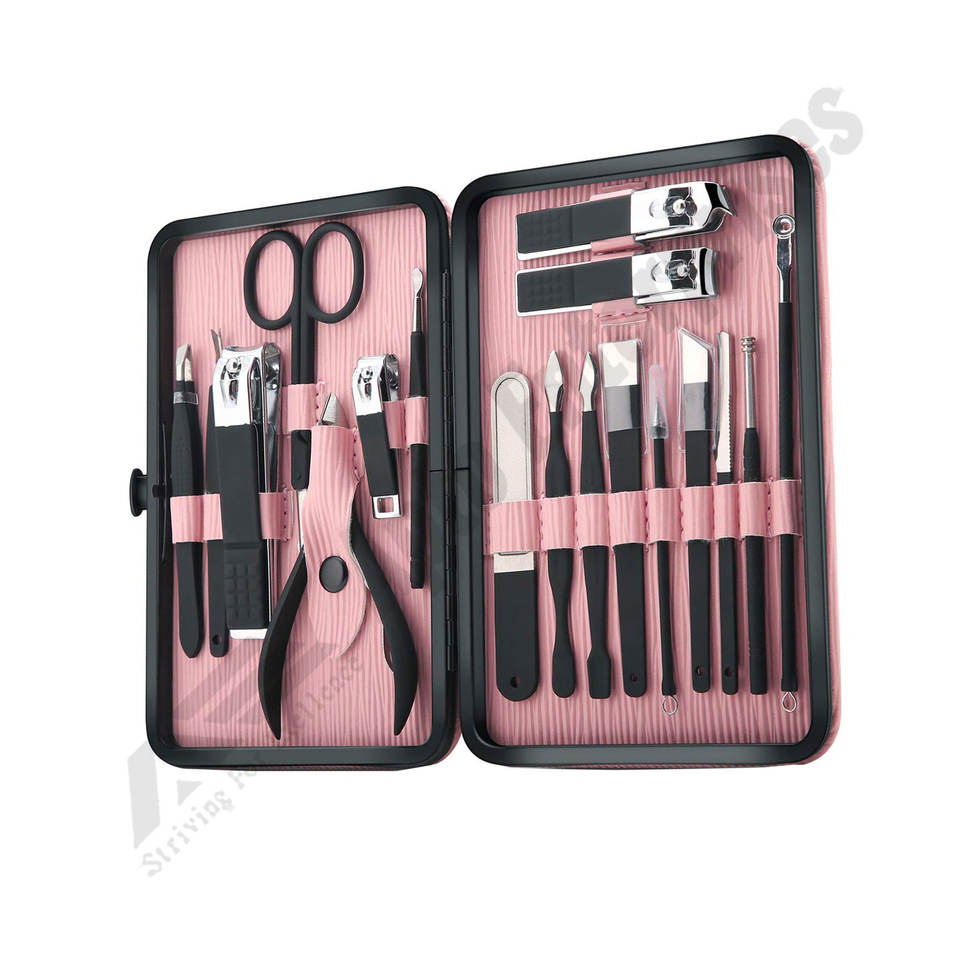 กรรไกรตัดเล็บสแตนเลสชุดทำเล็บสีชมพูสำหรับผู้หญิงมืออาชีพเครื่องมือดูแลเล็บเท้า18ชิ้น