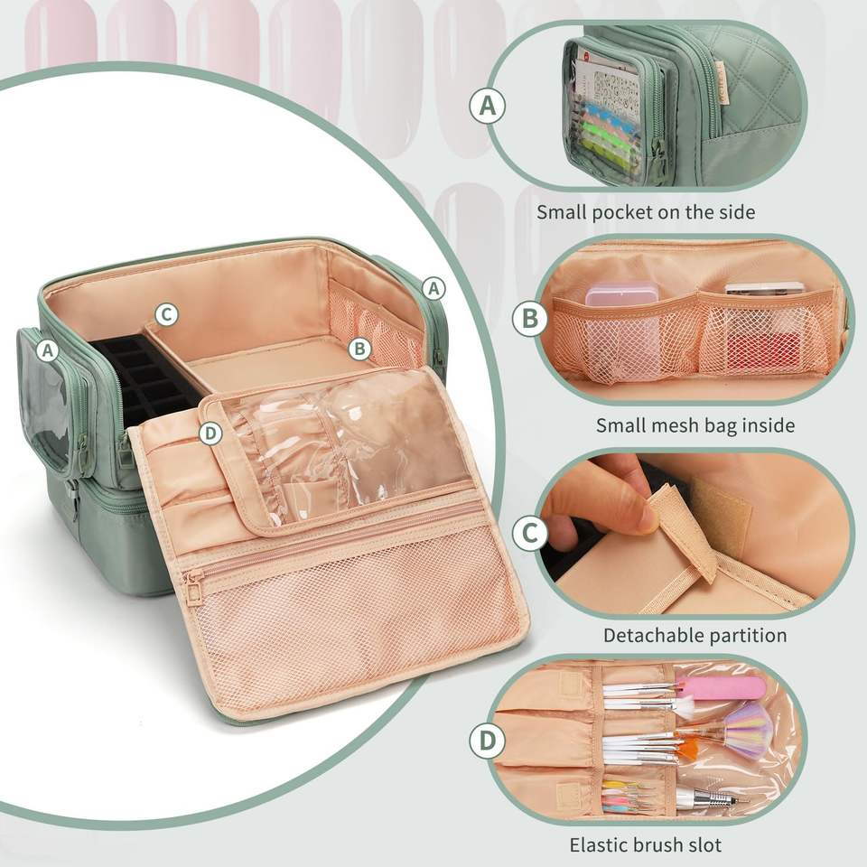 กล่องเก็บยาทาเล็บ จุขวดได้ 40 ขวด พร้อมโคมไฟสำหรับทำเล็บ กระเป๋าใส่ยาทาเล็บพร้อมช่องเก็บอุปกรณ์ทำเล็บ