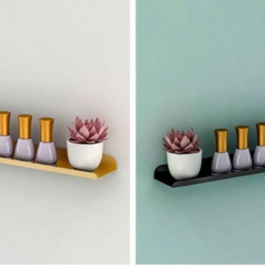 ชั้นวางยาทาเล็บติดผนังแบบแขวน ชั้นวางเหล็กสำหรับเก็บยาทาเล็บสีทอง ชั้นวางโชว์ยาทาเล็บ
