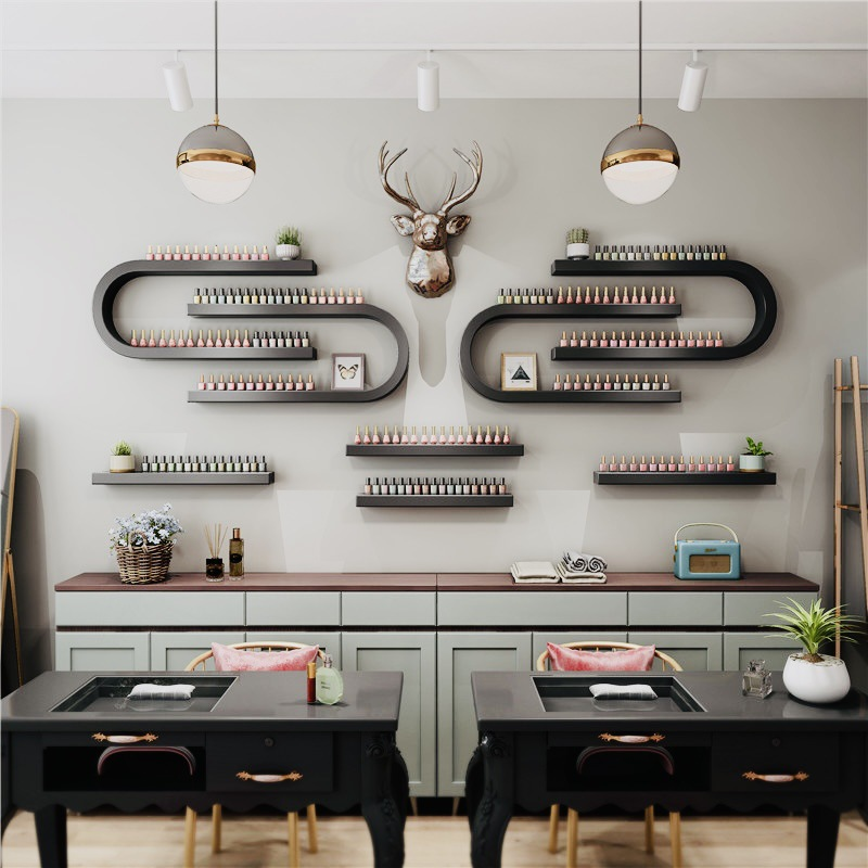 ชั้นวางโชว์ร้านทำเล็บ ที่จัดเก็บยาทาเล็บ ที่วางยาทาเล็บแบบติดผนัง ชั้นวางยาทาเล็บ