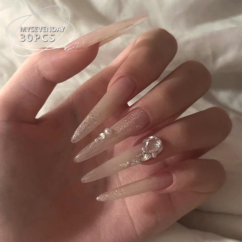 เล็บแถบที่ทำไว้ล่วงหน้าระดับไฮเอนด์เปลือยตาแมวบดเพชรเป็นประกาย4.0ยาวน้ำหยดสติกเกอร์เล็บที่สวมใส่ได้