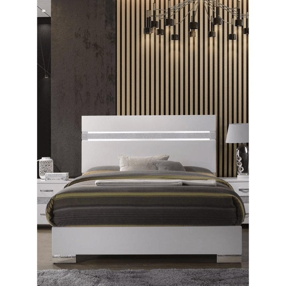 เตียงนอนไนมา 2 ขนาดควีนไซส์ สีขาวเงาหรูหรา ผลิตภัณฑ์เตียงนอนสุดหรู