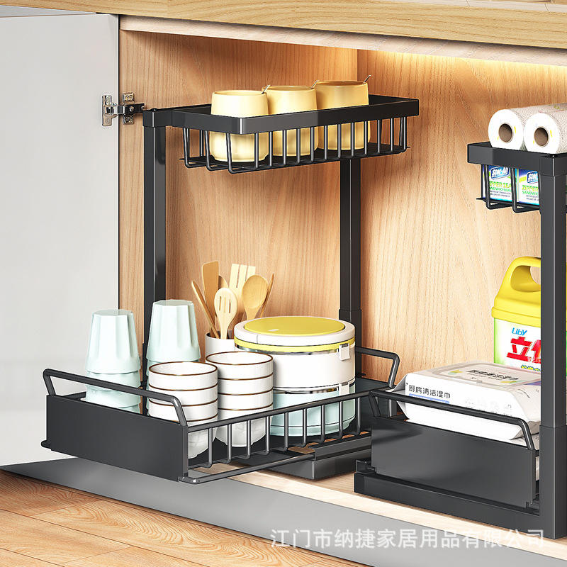 ชั้นวางอ่างล้างจานแบบดึงออกได้รูปตัว L - สีดำ (ดีไซน์แบบดึงออกได้)