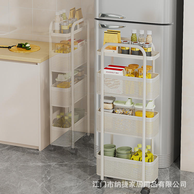 รถเข็นเก็บของในครัว Najia ชั้นวางเครื่องเทศหลายชั้นพร้อมล้อ สำหรับจัดระเบียบตู้เย็น ชั้นวางของในพื้นที่แคบ ดีไซน์ทรงสี่เหลี่ยมผืนผ้า