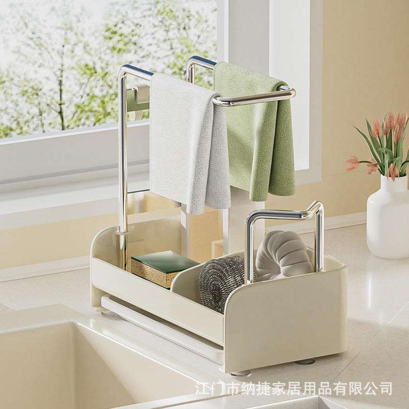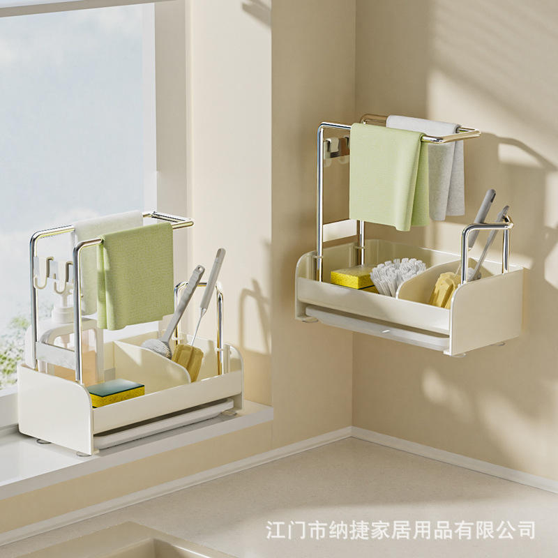 ที่วางจานชามแบบติดผนัง รุ่น Najie รูปทรงสี่เหลี่ยมผืนผ้า ขนาด L สำหรับแขวนฟองน้ำและผ้าเช็ดจาน ใช้จัดระเบียบบนเคาน์เตอร์ ไม่ต้องเจาะผนัง