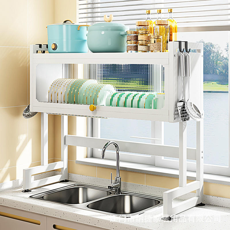 ชั้นวางจานในครัว Najie สำหรับตู้ใต้อ่างล้างจาน ชั้นวางของบนเคาน์เตอร์ ป้องกันฝุ่น ชั้นวางระบายน้ำสำหรับชามและจาน ขนาด L