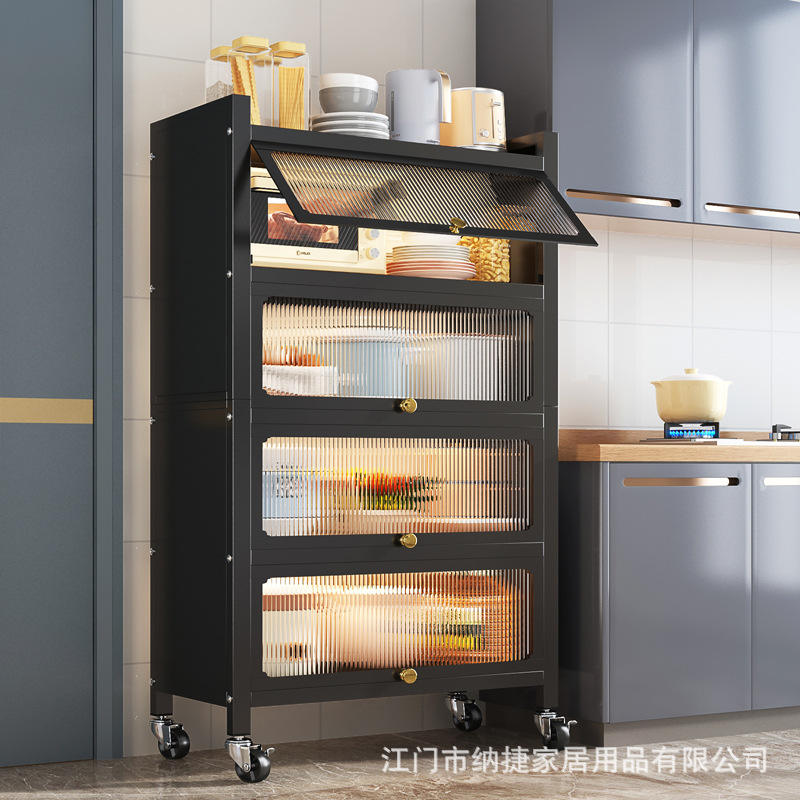 ตู้เก็บของครัวแบบตั้งพื้น Najie Modern ผลิตจากเหล็กกล้าคาร์บอน หลายชั้น พร้อมล้อเลื่อน สำหรับเก็บไมโครเวฟและหม้อ