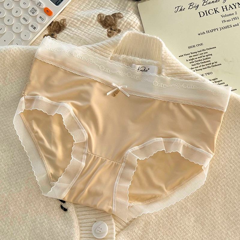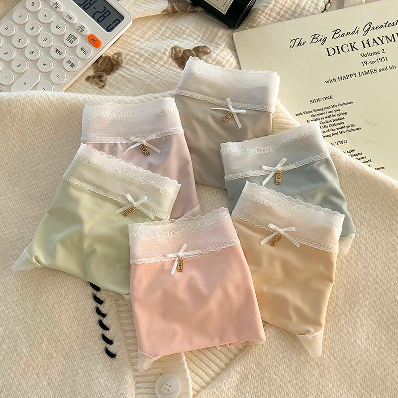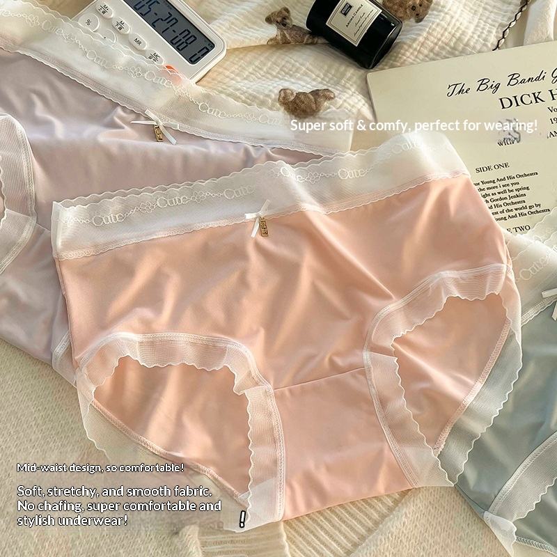 ชุดชั้นในไร้รอยต่อ Naked Feeling Series ผ้าไหมมัลเบอร์รี่ แต่งลูกไม้ บางเฉียบ เอวกลาง สีพื้น ระบายอากาศได้ดี สวมใส่สบาย