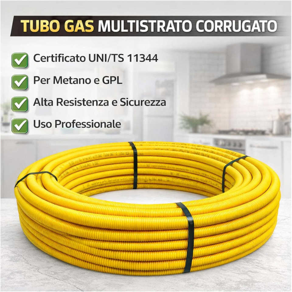 ท่อแก๊สเปลือยหลายชั้น PE-Xb/AL/PE-Xb ขนาด 16x2 มม. ม้วน 25 ม. สำหรับระบบแก๊สมีเทนภายใน พร้อมใบรับรอง UNI/TS 11344